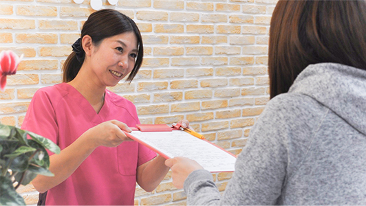 男性が苦手というお子さま、女性の方でもご安心ください。当院は、働くスタッフ全員女性&全員有資格者(歯科衛生士、歯科技工士、看護師)です。男性を威圧的に感じてしまう、男性は話しづらいという方など、リラックスして受診してください。きめ細やかな気配りとコミュニケーションで皆様の矯正治療をサポートいたします。